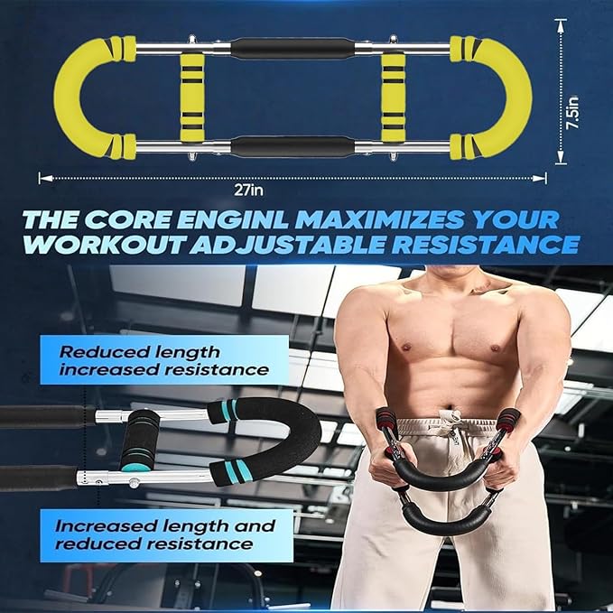 - [Full upper body fitness equipment] Portable and detachable Twister Arm Trainer as your personal workout trainer and helping you get a killer chest workout, Through the training guide chart. Strength bar work multiple muscle groups with precision, including chest, arms, biceps, abs, shoulders and back, and thigh muscles.