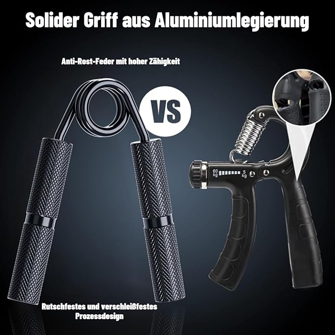 - 【Excellent Material】-- The Oblitor hand gripper trainer handle is made of high-quality knurled aluminum, not easy to rust, non-slip and wear-resistant. The high-tenacity carbon steel spring gives the forearm strengthener exerciser a long service life, the number of folding times for grip strength trainer can reach 100,000 times. Each forearm strengthener is equipped with a removable handle cover. The handle cover with air holes is non-slip, absorbs sweat and does not hurt your hands