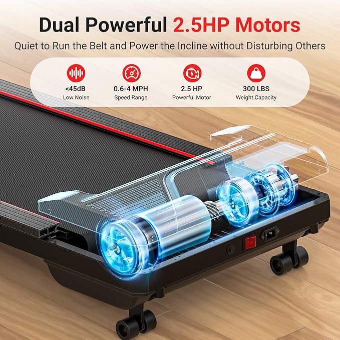 - Quiet Motor: THERUN under desk treadmill packs a 2.5 HP motor for stable speeds from 0.6-4 mph, effortlessly switching between walking and running modes. Its ultra-quiet operation keeps noise minimal even at top speed - ideal for home offices or apartments where peace matters. Maintain your fitness flow during work calls, chores, or downtime without disrupting others around you.