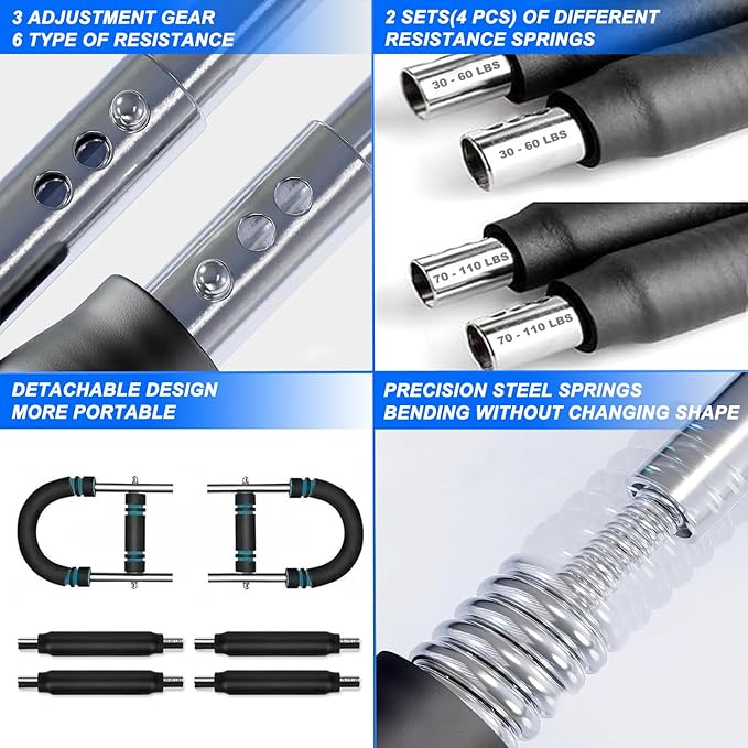 - ✅【2025 Upgraded Twister Arm Trainer】: The 2025 upgraded twister arm trainer features thickened sleeves, 6-level resistance (30-110 lbs), and welded springs for durability. Includes 2 sets (4 springs) for versatile workouts—from rehab to advanced muscle toning. Perfect as twister arm trainer for men/women, home chest workout equipment, and home workout equipment.
