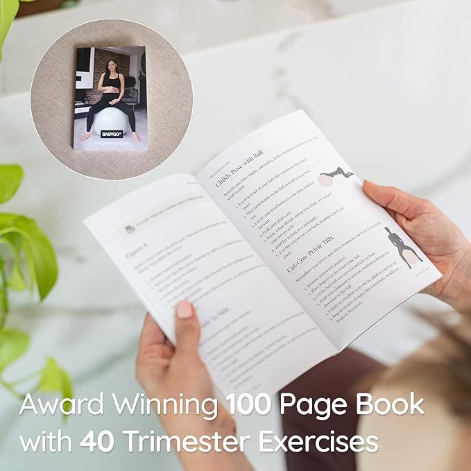 BABYGO Birthing Ball - Pregnancy Yoga Labor & Exercise Ball & Book Set Trimester Targeting, Maternity Physio, Birth & Recovery Plan Included Anti Burst Eco Friendly