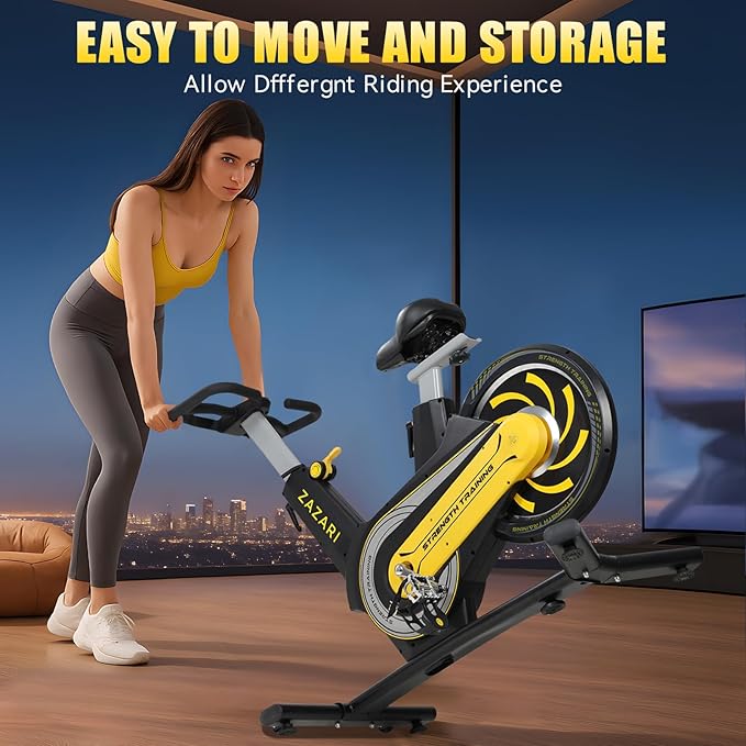 - 【Safe and Convenient Stationary Bike】Built with a commercial-grade steel frame to support up to 350 lbs. Features an emergency resistance knob to stop the flywheel instantly for your safety. Its compact 4' x 2' footprint is smaller than a yoga mat, and transport wheels make it easy to move and store