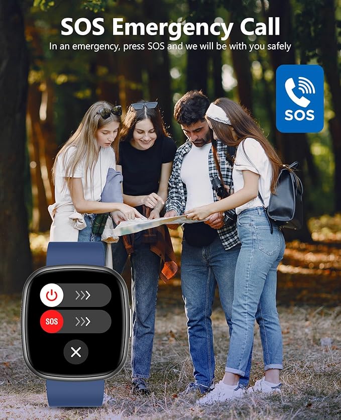 - SOS EMERGENCY CALL AND SMART VOICE ASSISTANT—Stay safe and connected with the SOS emergency call feature on this smartwatch—it sends a distress alert when you need help the most. It also features a built-in smart voice assistant, allowing you to control your phone hands-free. Set alarms and reminders, check the weather, play music, and more—just by using your voice. A smarter and safer way to manage your day.