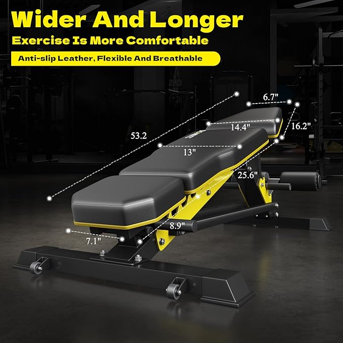 - 【Heavy-duty steel construction】The weight bench frame made of 70*50mm commercial thickness steel which makes the strength training bench has a 1200 lb weight capacity and bring an excellent longevity