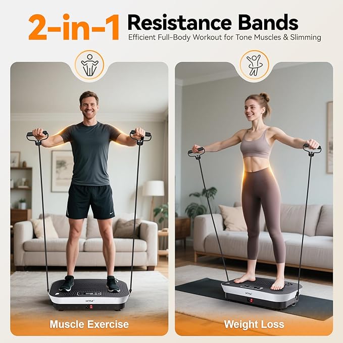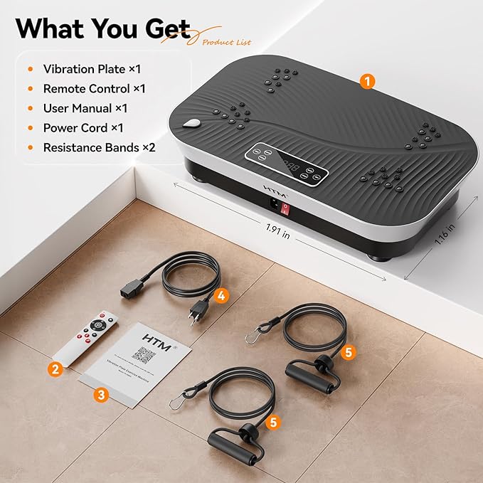 - Compact & Space-Saving Design: Lightweight and portable, this vibration machine fits under beds or desks with ease. Whether at home, gym, or traveling, stay fit anytime, anywhere with HTM's premium vibration plate