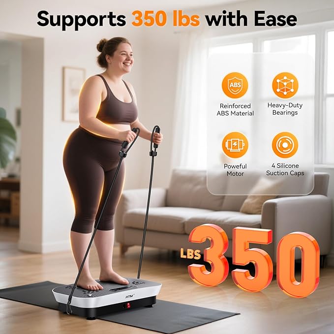 - Heavy-Duty & Safe to Use: Built with high-quality ABS plastic, this vibration plate supports up to 350 lbs and features an anti-slip surface for secure workouts. Quiet operation allows exercise anytime without noise disruptions