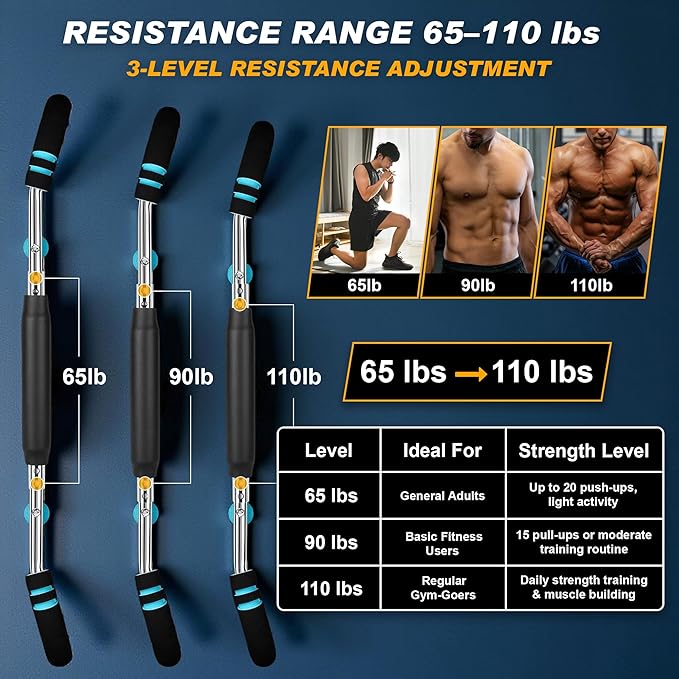Twister Arm Exerciser Bar – Heavy Duty Adjustable Resistance (60-110 lbs) for Chest, Arms & Shoulders – Portable Home Fitness Equipment for Strength Training Anywhere