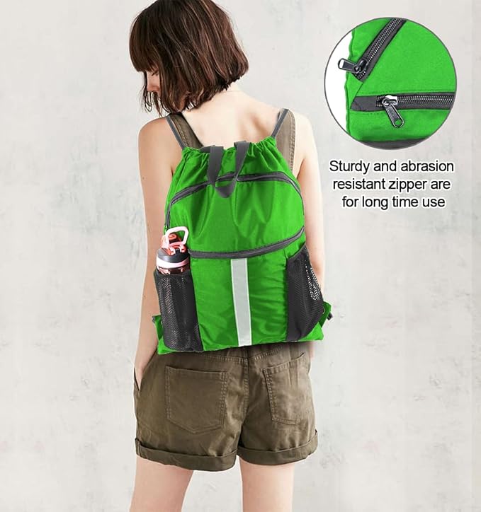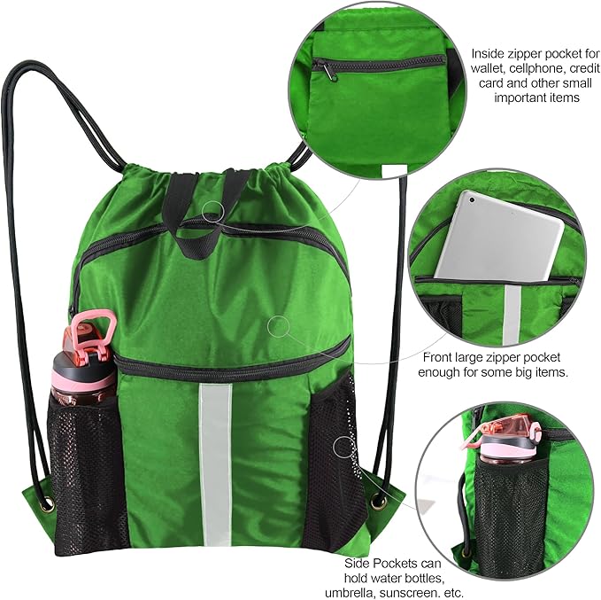 BeeGreen Drawstring Backpack Bag with Shoe Compartment, X-Large Black Gym Sports String Cinch Backpack
