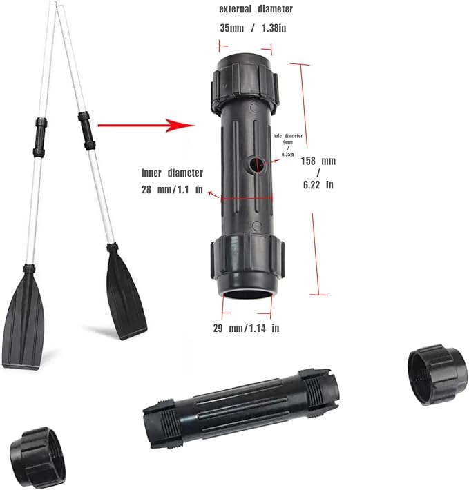 - 【WIDE APPLICATION】: The Plastic Paddle Connector is replacement for kayaks, canoes, drift boats, stand up paddle boards, inflatable boats and other kinds of water recreation, sports, activities and competitions. And it matched for paddles with diameters ranging from 26mm/1.02in to 28mm/1.1in .