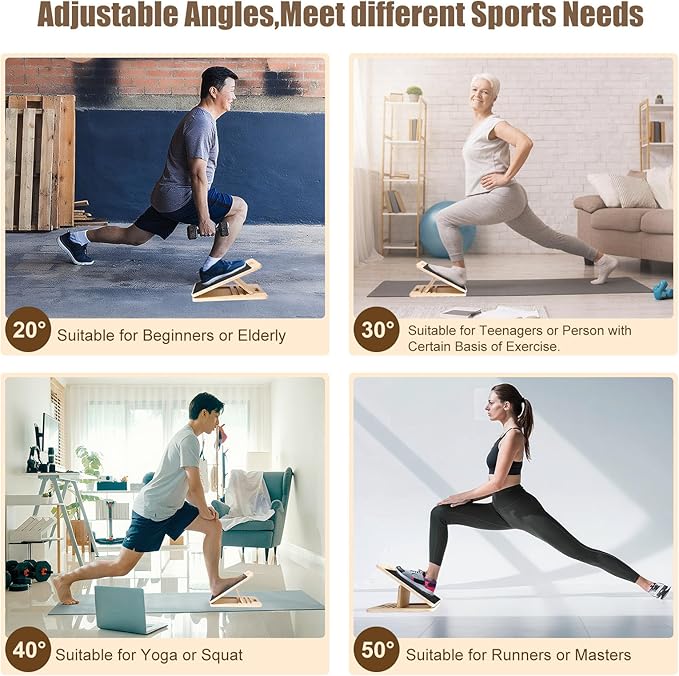 - Easy to use - 4 adjustable positions: 20°, 30°, 40°, 50° Slant board for squats for portability, suitable for stretching and weight-bearing exercise at home, office, gym, and clinic