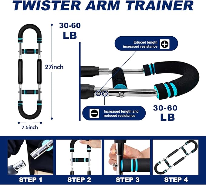 Pro-Grade Twister Arm Trainer- 30-100lb Adjustable Chest Workout Equipment for Men&Women,Beginners or Professional, Adjustable Portable Arm Chest Exerciser with Anti-Slip Grips for Home Gym