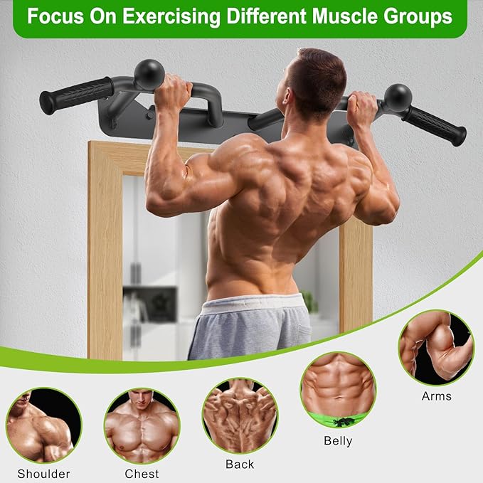- 【Dynamic Multi-Grip Versatility】Featuring five distinct grip positions—wide, narrow, neutral, ball finger, and hammer grips—this chin up bar lets you target various muscle groups including the back, shoulders, chest, arms, and abs. Mix and match grips to craft your ideal workout and challenge your body in new ways.