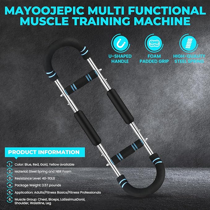 - 【Adjustable Chest Workout Equipment】Our twister arm trainer for men & women adopts an upgraded 3-hole design, equipped with two high-strength steel springs, providing three-stage resistance adjustment with a total of 5 levels of intensity for training (40/65/90/100/110LB). From basic warm-ups and rehabilitation training to advanced muscle shaping, our arm twister exerciser can fully meet your diverse fitness needs.