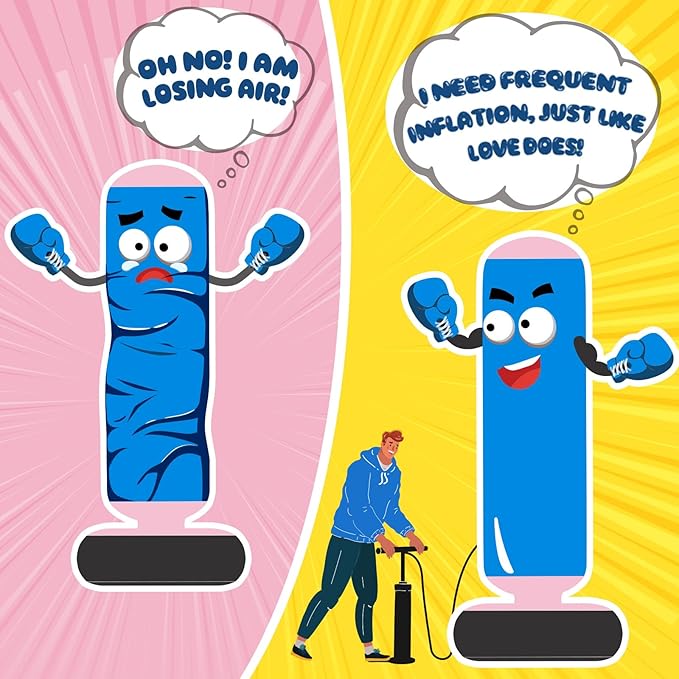 - Promotes Growth: The simple act of hitting, kicking, and punching this inflatable punching bag helps kids develop balance, strength, and coordination. Your child can reduce tension and develop confidence by using a kicking punching bag during playtime. Let your children grow alongside this inflatable boxing bag.