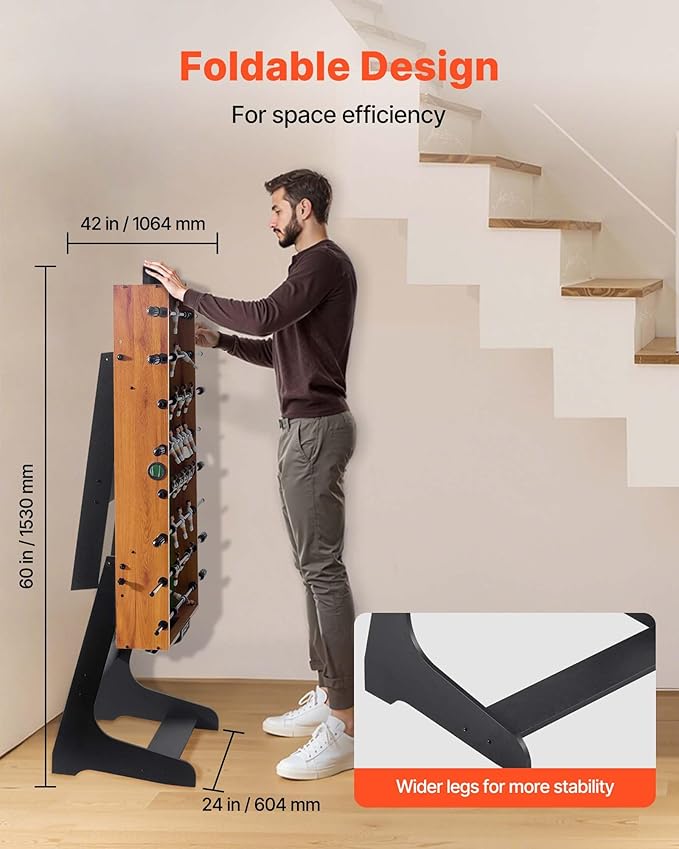 - Foldable for Storage: With reliability in mind, the foosball table features a foldable design to maximize space efficiency, making it suitable for use in small spaces