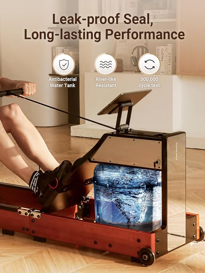 - Dual Resistance System (Water + Magnetic): Experience authentic rowing with 77LBS of water resistance that produces natural, immersive sounds, combined with 33LBS of adjustable magnetic resistance controlled by a simple knob. This 110LBS total resistance system adapts to all fitness levels - increase water volume for heavier pulls or fine-tune magnetic resistance for precise intensity control, creating endless workout possibilities by KINGSMITH rower machine.