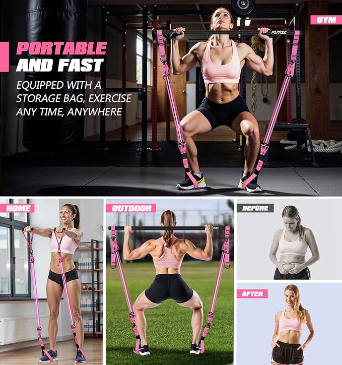 - 3-Set Assembly & Ultimate Portability: Quick-release 3-section design enables instant setup/breakdown. Adjustable straps customize length, while the included compact bag stores all accessories, saving space. Ideal for home, travel, or gym warm-ups—achieve muscle burn in just 30 minutes anywhere.