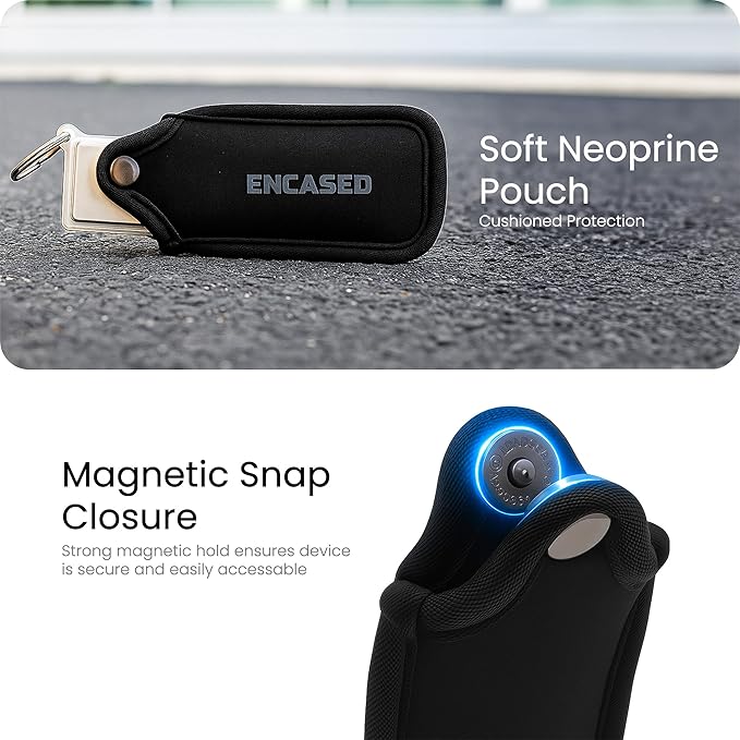 - Slim Neoprene Pouch: Measuring just 1/2" in thickness, the pouch keeps the device secure with an easy-close magnetic snap closure and soft, cushioning protection, while still maintaining a pocket-friendly profile.
