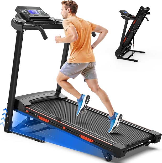 - 【15% Adjustable Auto Incline】Walking treadmill with auto incline equipped with 15 levels of incline from 0% to 15% and speed from 0.5 MPH to 8.5 MPH. Both for body recovery, speed building, and endurance increase. Inside 10 shock absorbers and 2 extra layers of non-slip running board will offer enough cushioning and stability. This is great for all fitness levels. Newbies start low and progress. Pros increase incline for intense workouts to boost leg power and cardio.