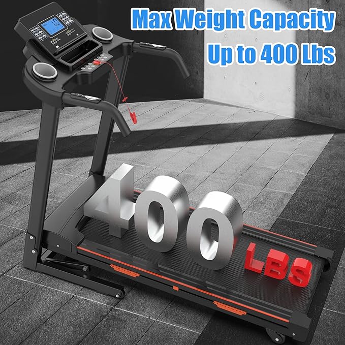 - 【3.5HP Quiet Brushless Motor】 Brushless motor with max 3.5 HP provides efficient and low-maintenance operation. The treadmill for home supports up to 400 lbs and speeds from 0.5 to 8.5 MPH, perfect for everything from leisurely walks to intense runs, all while maintaining an under 45 dB low noise level.
