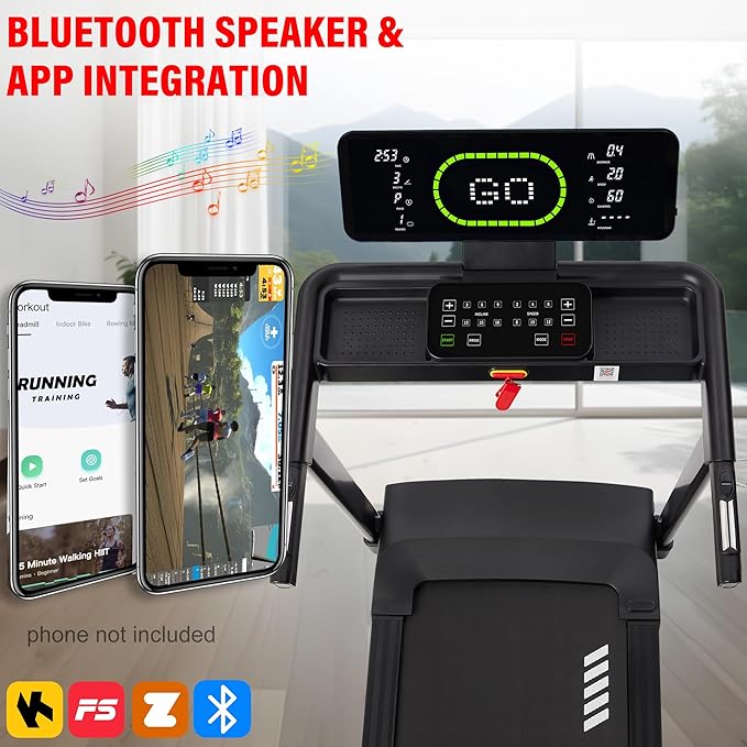 - 【Bluetooth Speaker & App Integration】 Transform workouts into immersive experiences! Jam to wireless beats through the built-in Bluetooth speaker while syncing with the fitness app for real-time stats, guided routines, and virtual scenic trails. You can personalize your experience and track your progress in real-time as you run.