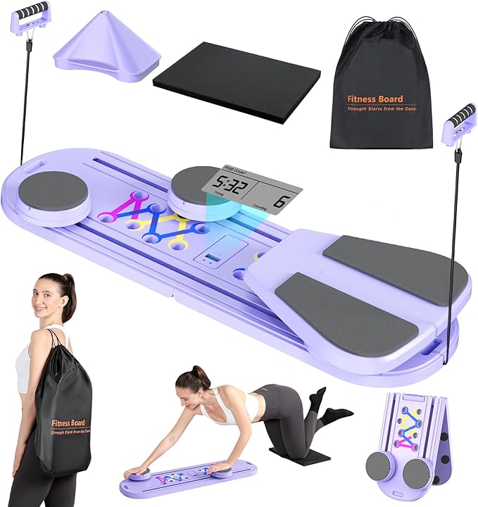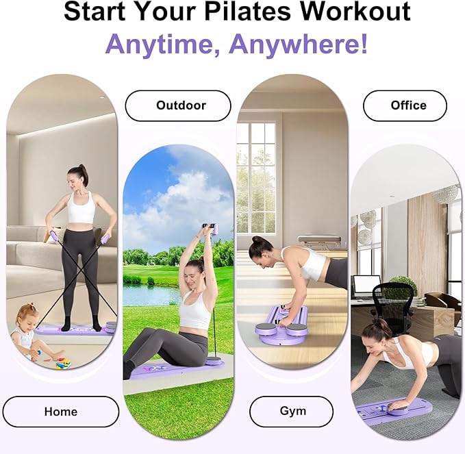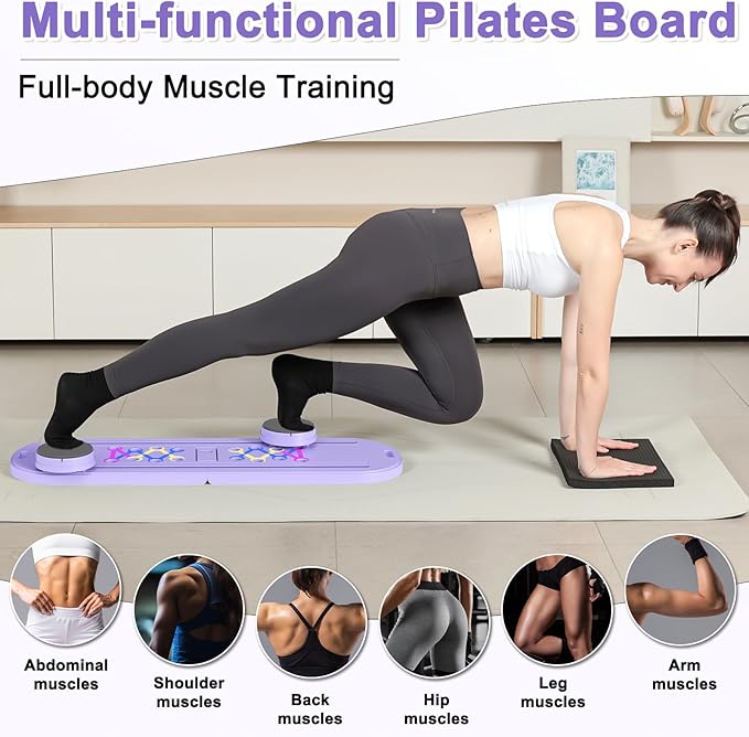 - Multi-functional Pilates Reformer Board: One board for total body exercise needs! Designed for shaping and burning fat, stamina building, it combines Pilates, ab wheel, push-up handle, resistance band and balance board in one. Supports abdominal, hip, leg, arm and other parts of the workout, it is your best choice for efficient workout.