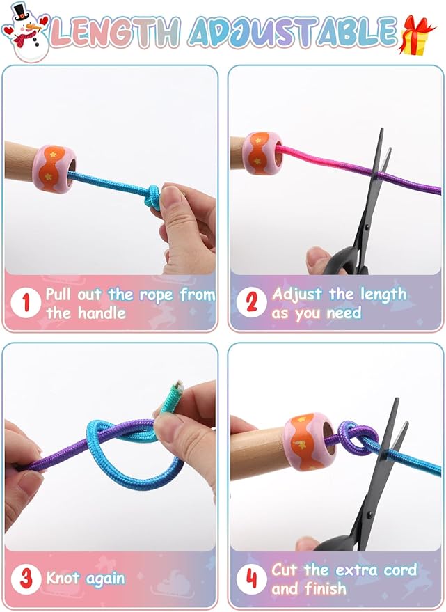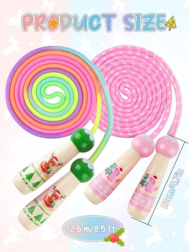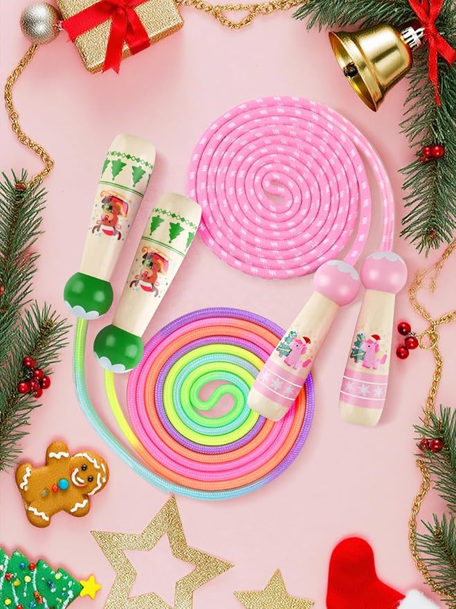 - Lorvain Jump Rope for Kids, 9.2FT Adjustable Cotton Skipping Rope with Wooden Handle for Girls and Boys Fitness Workout Exercise Outdoor Activity ( Pink Unicorn & Green Sled Bear)