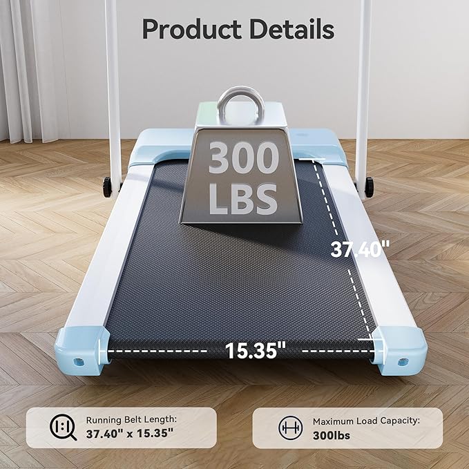 - Treadmill 3.0 hp : The under desk walking pad treadmill is equipped with a quiet 3.0HP motor and has a maximum weight capacity of 300 pounds.The quiet motor of this foldable treadmill operate lower 55 dB and a maximum speed of 7.5mph , you donβt have to worry about disturbing others while exercising