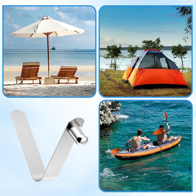 - Package Contents: This set includes 8 high-quality stainless steel spring tent clips for securely holding kayak paddles and other items