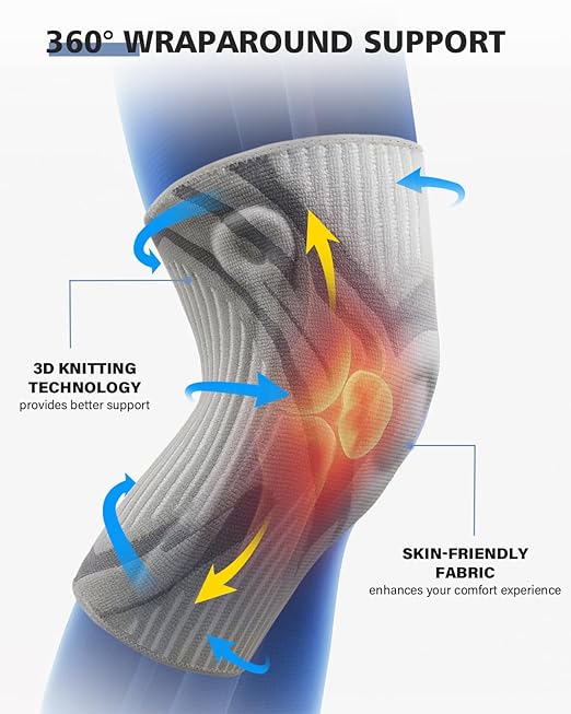 - 【WHEN DO YOU NEED THIS KNEE BRACE?】---UNLOCK COMFORT IN EVERY ACTIVITY--- Never let knee worries hold you back. [1] Dual flexible stabilizer prevent over-flexion/twisting—reducing injury risk during sports. [2] The knee support made of a mixture of nylon and polyester and is highly elastic and breathable. They're quick at absorbing sweat and keep your knee dry and odor free. [3] A special knitted technical design, ensuring your sleeve stays always put, no matter what you do.