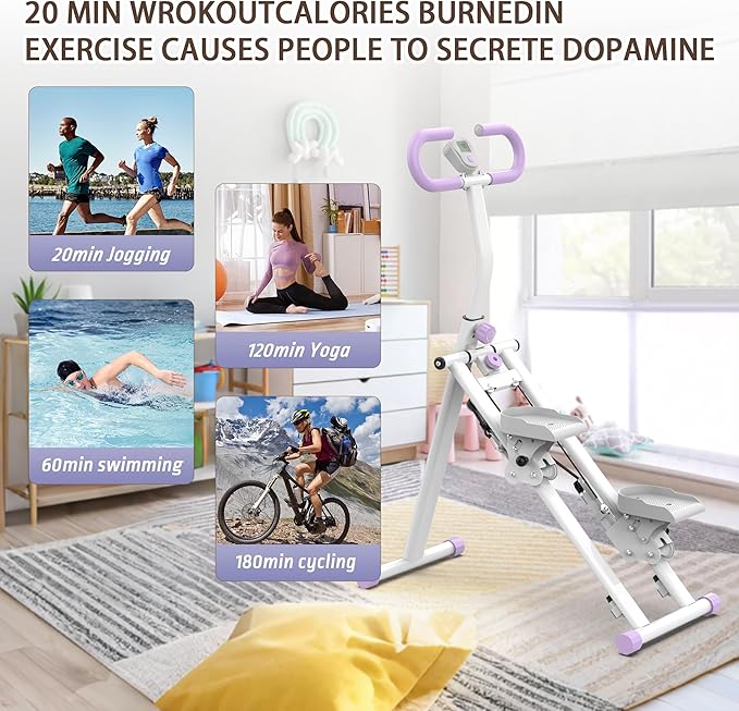 - 【Full-Body Workout in Minutes】The stair stepper mimics natural climbing motions, combining cardio and muscle toning for a powerhouse workout. Target your core, hips, legs, and abs efficiently—just 20 minutes equals 20 mins of jogging, 60 mins of swimming, or 120 mins of yoga. Perfect for all fitness levels!