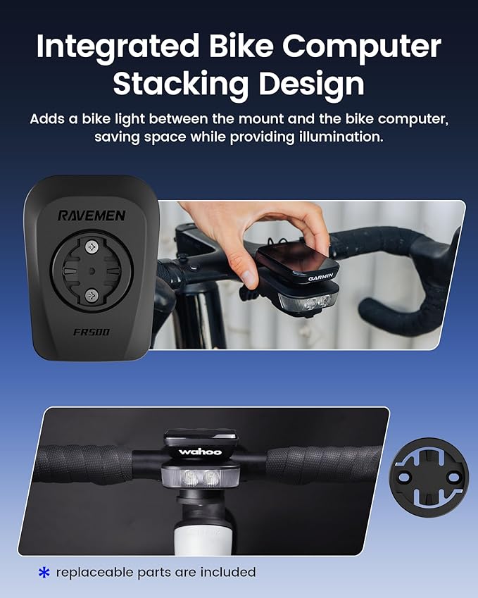 - [Cycling Computer Ready] Compatible with Garmin, Wahoo, and Bryton bike computers; Compatible with Garmin out of the box; Swap the included parts (see manual) for Wahoo compatibility, except for the original Wahoo ELEMNT BOLT aero out front mount; Use with QTM04 (sold separately) for Bryton compatibility; NOTE: Out front mount is NOT included