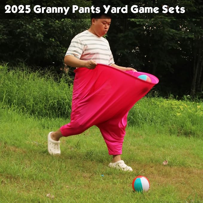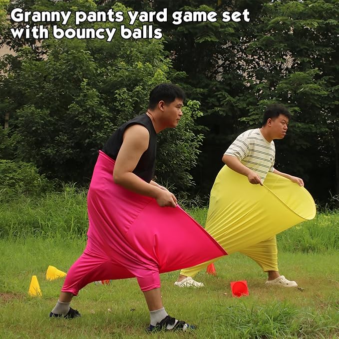 Granny Pants Yard Game Set - Peculiar Outdoor Game Granny Pants with 3 Bouncy Balls, 2 Marker Cones & Air Pump, Perfect for Family Reunion Games, Backyard Gatherings & Team Games