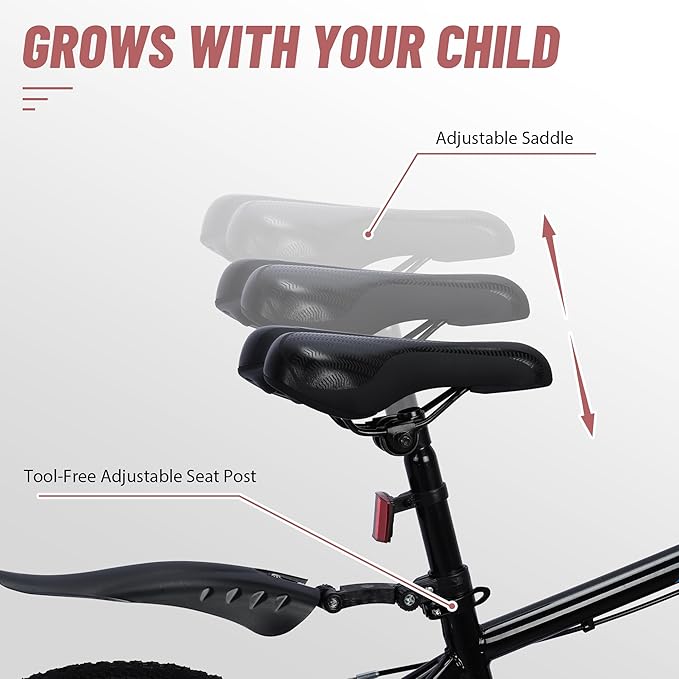- Comfortable Ride - The boys cool bike adopts aluminum alloy wheels to ensure durability and lightness. Large size waterproof breathable and comfortable seat, low frame allows easy getting on and off the bike, creating a smooth and comfortable riding experience for your child.
