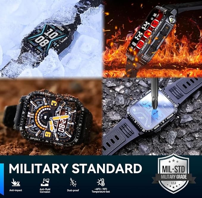 - Rugged Military-Grade Durability: Built with a special aluminum alloy frame, passing 12 military tests for extreme temperature, dust, and water resistance (5ATM waterproof), perfect for outdoor adventures and tough environments.