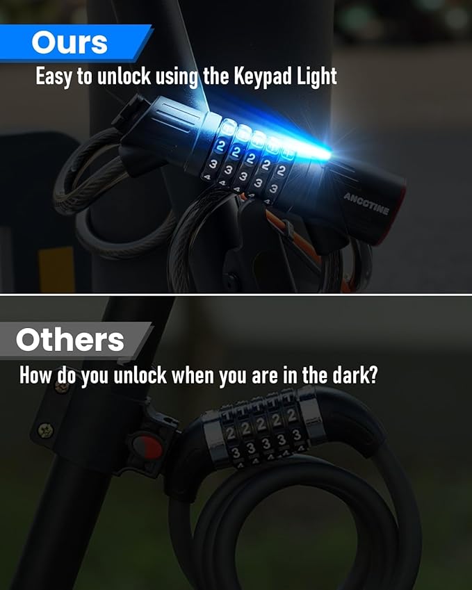 - 【5-Digit Keyless Anti-Theft 】This heavy-duty bicycle lock anti-theft cable uses 5-digit resettable combination for 100,000 code options—offering 10 times more security than other 4-digit locks. You never have to worry about forgetting to bring or missing the key, because the key is in your brain