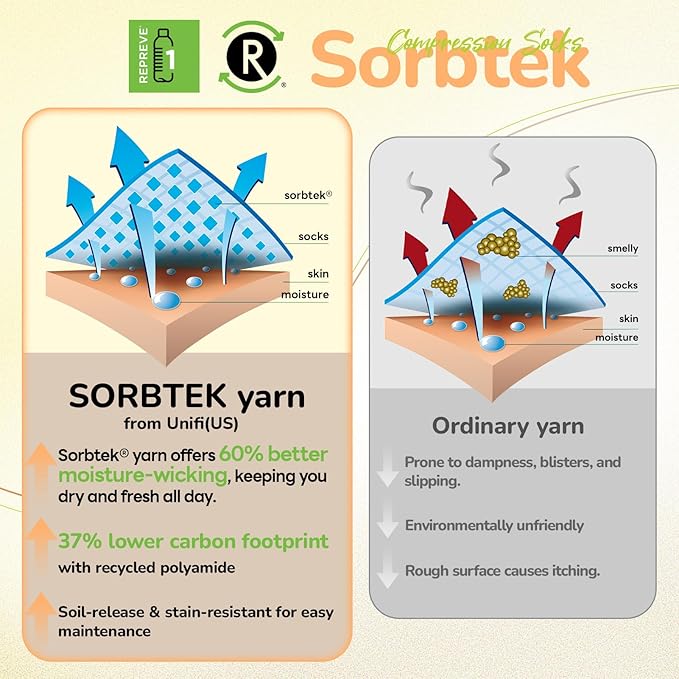 - Ultra Soft & Breathable: The compression socks is made of MERINO WOOL & VISCOSE from BAMBOO, which is anti-odor, moisture-wicking, thermoregulating, breathable, ultra-soft, lightweight, perfect for all-season comfort. Arch Support assists in optimizing foot force, Seamless Toe Closure protect your toes