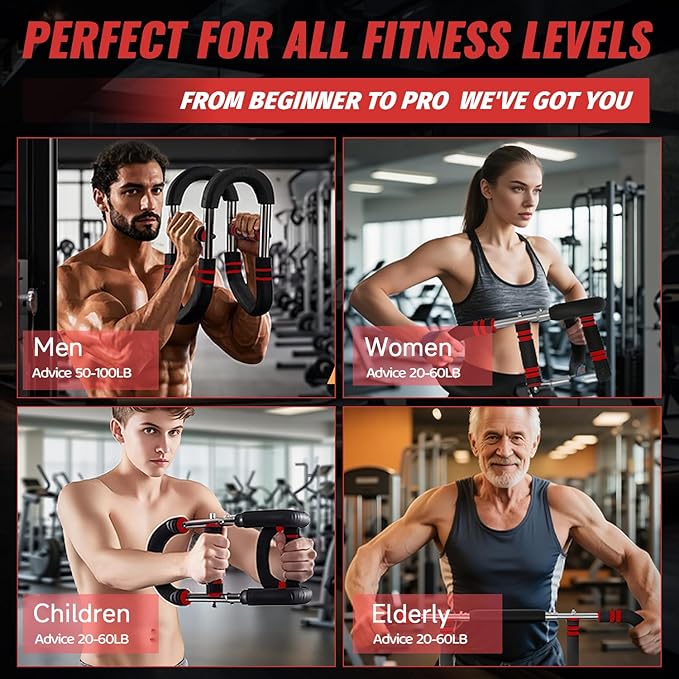 - Adjustable Resistance: Our chest workout equipment features multiple resistance levels. Both beginners and fitness enthus4asts can adjust the intensity and difficulty of equipment according to their abilities and needs.Lightweight yet durable, ideal for home gyms or on-the-go workouts