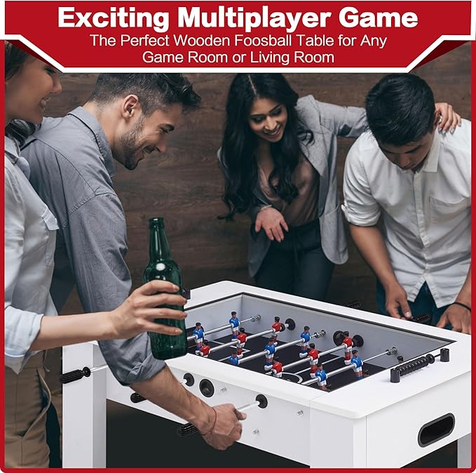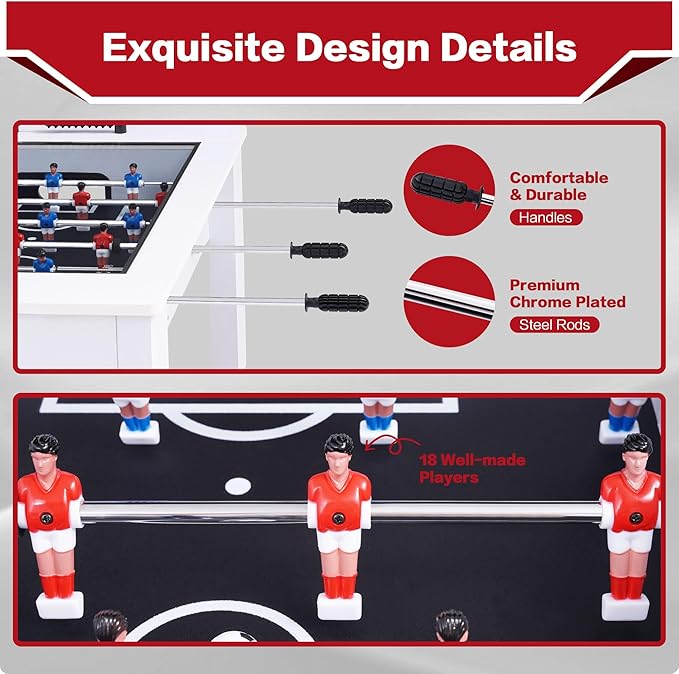 - 【Easy to Assemble】Competitive foosball games for adults and kids. Classic soccer game table full size: 42"x28"x21.4"(LxWxH) and comes with two footballs. With detailed assembly instructions and all hardware delivered, you can easily fit in your game room, basement or den.