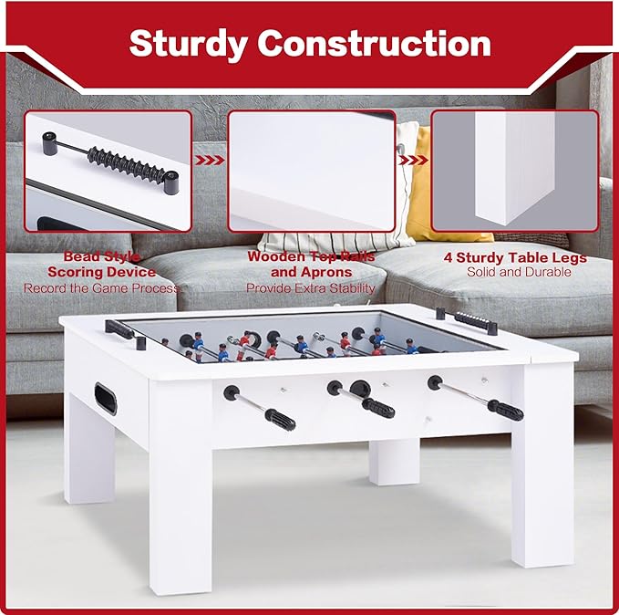 - 【Multi-functional Coffee Table】This stylish wood grain furniture combines the functionality of a coffee table with the excitement of a football game. Featuring a 31”x 22” playfield and a transparent tempered glass top that allows you to watch and engage in thrilling matches while enjoying your favorite beverage or hosting gatherings.