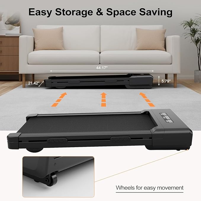 - 【Space-Saving Design】This compact walking treadmill fits perfectly into tight home or office spaces. Walk while you work or watch TV to stay active and boost productivity. Lightweight and easy to store vertically or tuck into a corner, its corner-friendly design maximizes space.