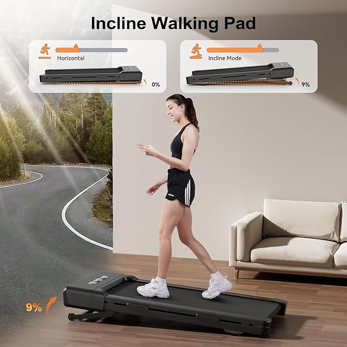 - 【9% Auto-Incline Walking Pad Treadmill】Seamlessly transition from walking to jogging, all the way up to challenging inclines. Burn calories, build endurance, and effectively strengthen your leg muscles. Maximize your home gym with versatile, high-efficiency cardio workouts.