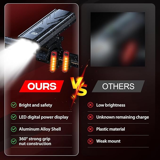 - IPX5 Waterproof & Lifetime Warranty:Withstands heavy rain/snow for all-weather biking. Shockproof construction survives MTB trail impacts. Your bike safety lights solution for road/mountain/commuter bicycles