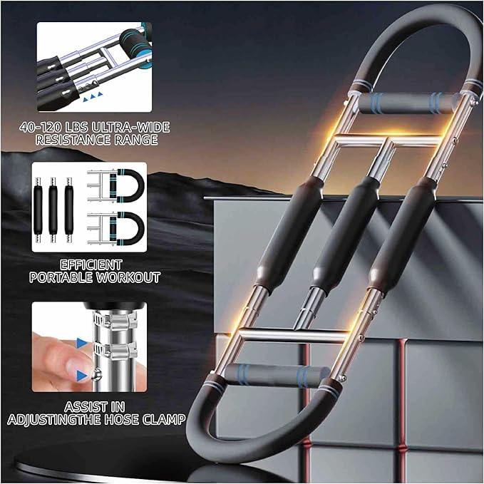 - 【Adjustable Resistance (180-220lbs)】The Twister Arm Trainer offers customizable resistance from 180 to 220 pounds,Its unique U-shape design not only targets your arms but also engages multiple muscle groups including the chest, wrists, back, legs, and shoulders, offering a versatile exercise experience