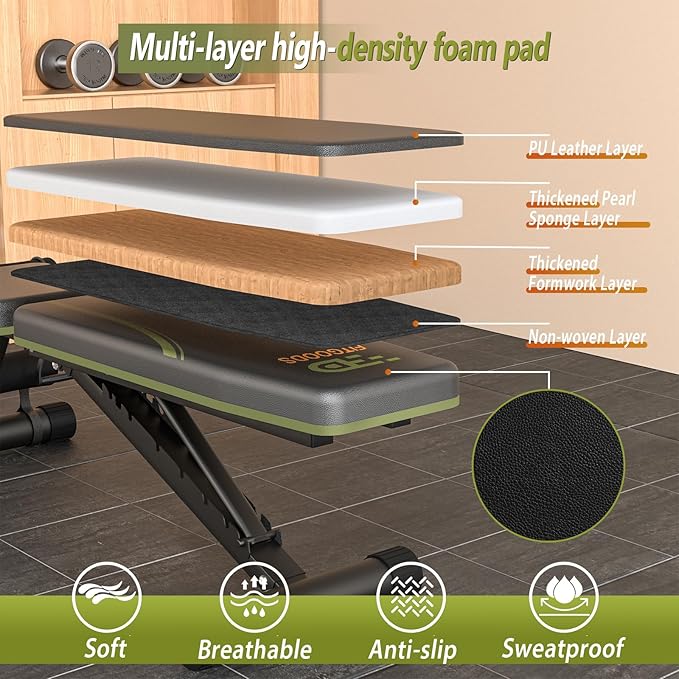- Highly Adjustable Bench: The adjustable workout bench offers 9 backrest positions, enabling versatile exercise such as incline, decline, flat and sit up bench. Gently move the angle of the backrest to quickly adjust to the position that works best for you
