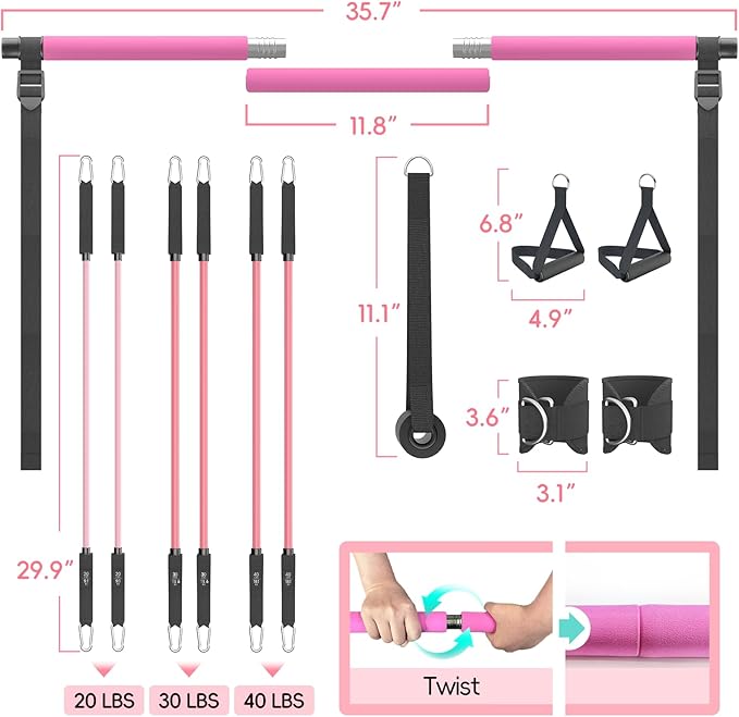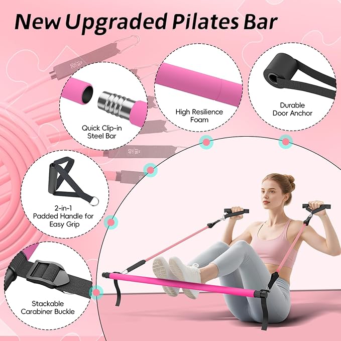 - Suitable for Every Fitness Level & Exercise Type - This Pilates kit adapts to every goal—tone muscles, burn calories, improve posture, or aid rehab. Includes a workout poster, exercise guide, and access to video tutorials. Whether you’re doing Pilates, yoga, squats, lunges, or stretching, it’s the most versatile resistance bar set for women and men