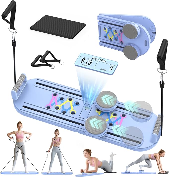 - Upgraded 4-in-1 Pilates Reformer Board - Unlock 10+ exercises with this all-in-one Pilates reformer board, combining Pilates board, resistance bands, ab roller, push-up handles, balance board, plank support, and Pilates bar. Perfect for core, glutes, legs, arms, and full body sculpting β bring the versatility of a home gym to any space
