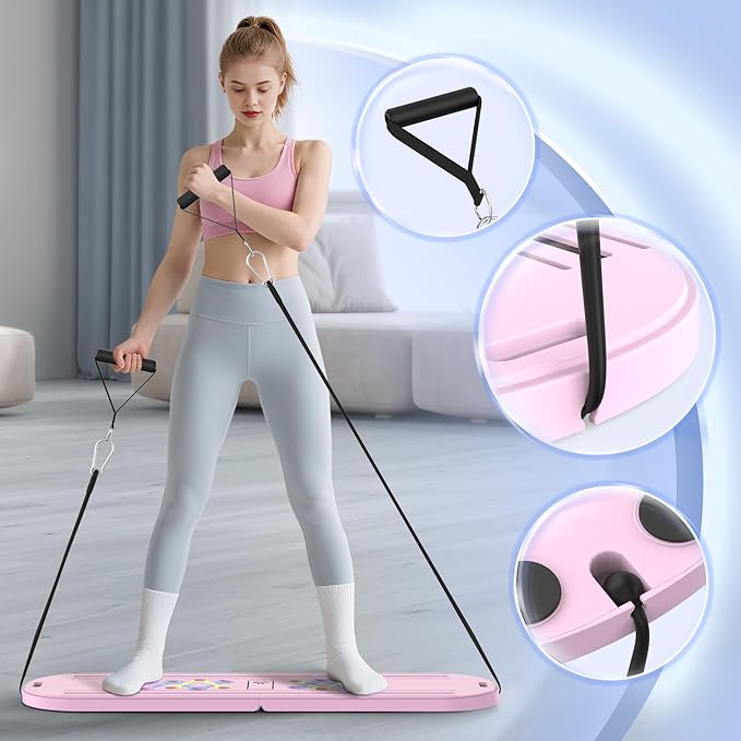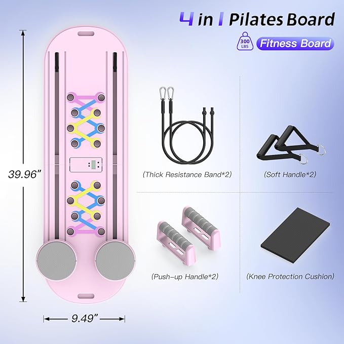 - Upgraded 4-in-1 Pilates Reformer Board - Unlock 10+ exercises with this all-in-one Pilates reformer board, combining Pilates board, resistance bands, ab roller, push-up handles, balance board, plank support, and Pilates bar. Perfect for core, glutes, legs, arms, and full body sculpting β bring the versatility of a home gym to any space