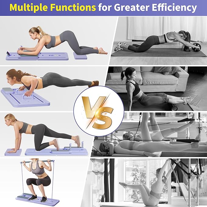- Multifunctional Resistance Training: This pilates reformer features adjustable resistance bands to target core, arms, legs, and back. Customize workouts for strength and flexibility with the pilates board for home workout, offering a compact alternative to large gym equipment. Ideal for toning and functional fitness.