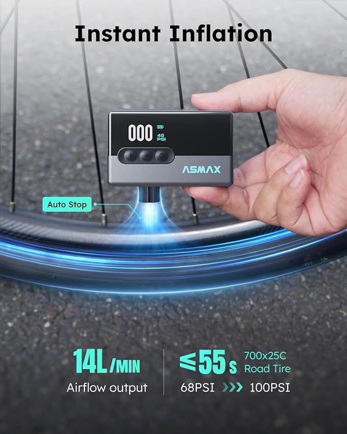 - 【120PSI Fast Inflation with High Accuracy】Inflates at 14L/min with max pressure of 120PSI. Fills a 700x23C road bike tire from 72–120 PSI in just 16 seconds. Suitable for all bike types (road, MTB, gravel), motorcycles, and sports balls.